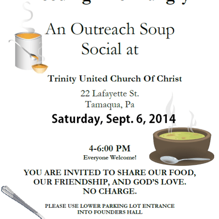 FREE COMMUNITY SOUP SOCIAL SATURDAY AT TRINITY U.C.C. IN TAMAQUA
