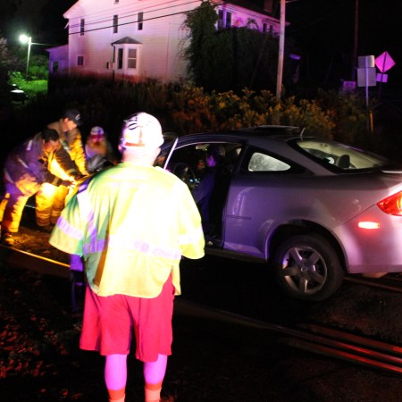 CAR ON THE TRACKS IN BARNESVILLE; TRAIN PASSED THROUGH 3 MINUTES PRIOR