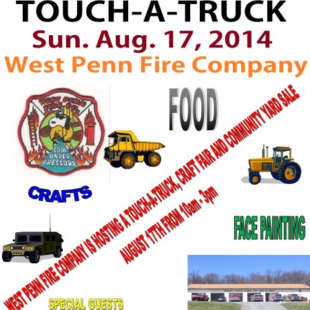 TOUCH-A-TRUCK EVENT SET FOR AUGUST 17, 2014 AT WEST PENN FIRE COMPANY; VENDOR SPOTS AVAILABLE