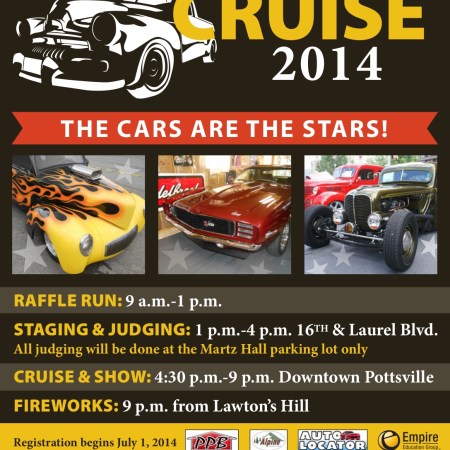 21ST ANNUAL GREAT POTTSVILLE CRUISE ON SATURDAY; (STAGING STARTS AT 1 PM, CRUISE STARTS AT 4 PM, FIREWORKS START AT 9 PM)