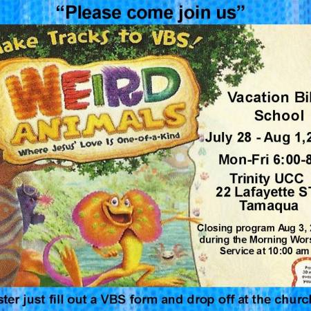 VACATION BIBLE SCHOOL THIS WEEK AT TRINITY UNITED CHURCH OF CHRIST IN TAMAQUA