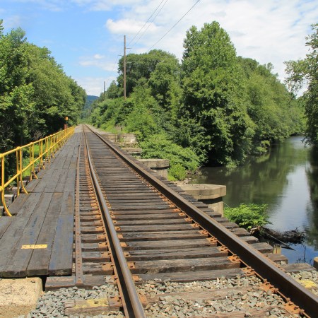 VIEWS OF TRAIN TRESTLE ABOVE LITTLE SCHUYLKILL IN NEW RINGGOLD