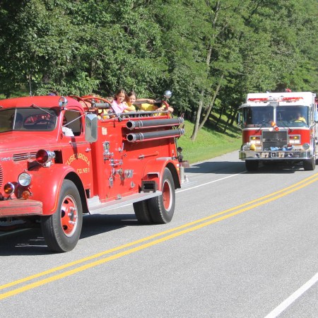ENJOYING A RIDE ON A CLASSIC FIRE TRUCK IN TUSCARORA