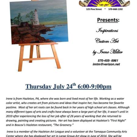TAMAQUA ART GALLERY FEATURES CUSTOM ART INSPIRATIONS BY IRENE MILLER