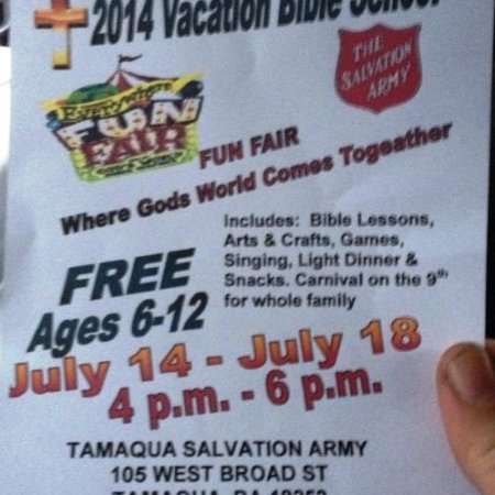 VACATION BIBLE SCHOOL FUN FAIR JULY 14 TO JULY 18 AT TAMAQUA SALVATION ARMY