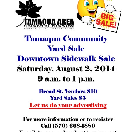 TAMAQUA DOWNTOWN SIDEWALK AND COMMUNITY-WIDE YARD SALE SET FOR AUGUST 2, 2014; SIGN UP NOW!