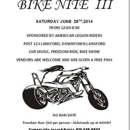 BIKE NITE III IN LANSFORD ON SATURDAY; INCLUDES FREEDOM RUN AND BLOCK PARTY