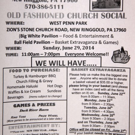 OLD FASHIONED CHURCH SOCIAL SUNDAY AT ZION’S STONE CHURCH IN WEST PENN