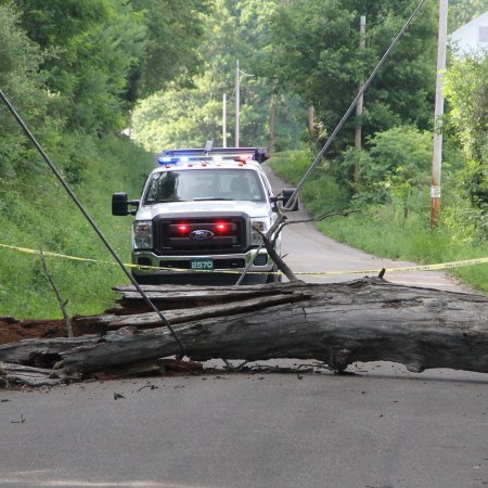 TREE FALLS ON WIRES IN RUSH TOWNSHIP; CHURCH ROAD CLOSED