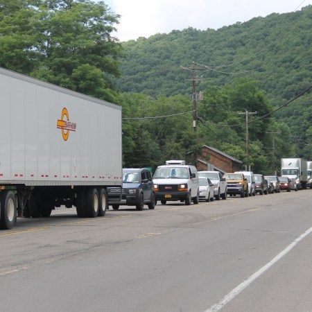 SOUTHBOUND TRAFFIC THROUGH TAMAQUA IS BACKED-UP ABOUT A MILE DUE TO PENNDOT ROAD REPAIRS