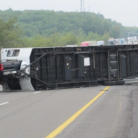 INTERSTATE 81 SOUTHBOUND BACKED UP NORTH OF THE DELANO EXIT FOLLOWING OVERTURNED TRAILER