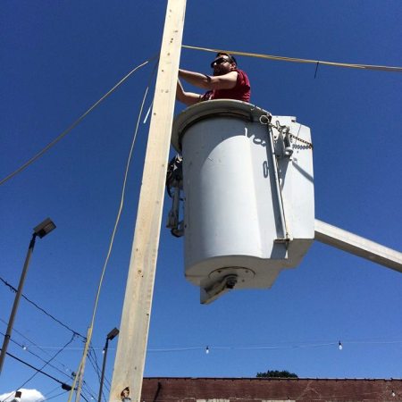 RIGGING UP THE LIGHTS FOR A BIG EVENT IN TAMAQUA