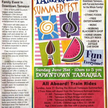 25TH ANNUAL TAMAQUA SUMMERFEST SCHEDULED THIS SUNDAY (FATHER’S DAY)