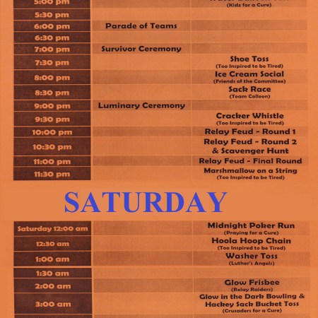RELAY-FOR-LIFE FOR TAMAQUA & SURROUNDING COMMUNITIES SCHEDULE OF EVENTS (June 19-20, 2015)