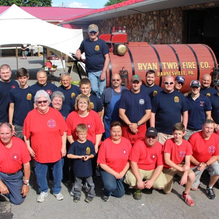 1859 WATER WAGON ON DISPLAY DURING RYAN TOWNSHIP FIRE COMPANY BLOCK PARTY; CELEBRATING 75 YEARS
