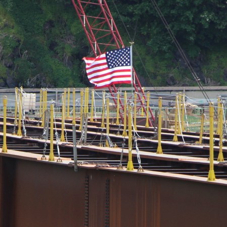 OLD GLORY ON THE NEW JIM THORPE MEMORIAL BRIDGE