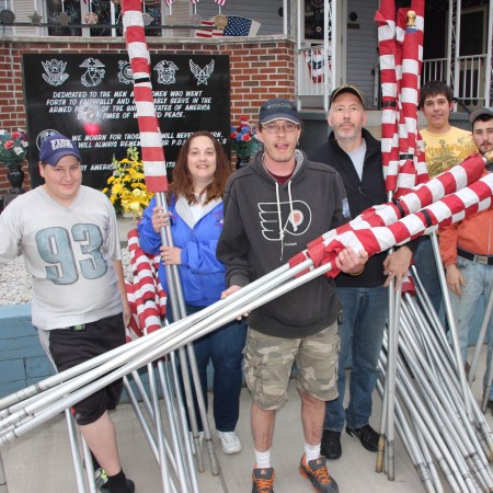 TAMAQUA RESCUE SQUAD HELPS AMERICAN LEGION PLACE FLAGS IN DOWNTOWN TAMAQUA