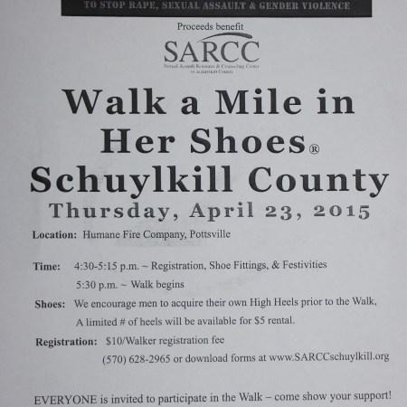 WILL YOU WALK A MILE IN HER SHOES THURSDAY IN POTTSVILLE?
