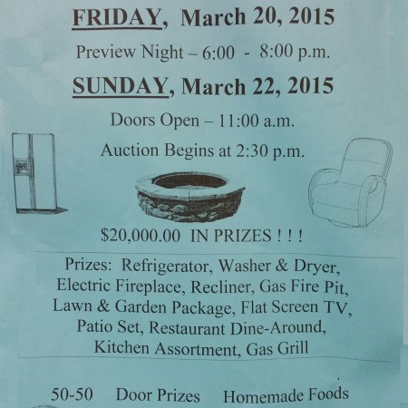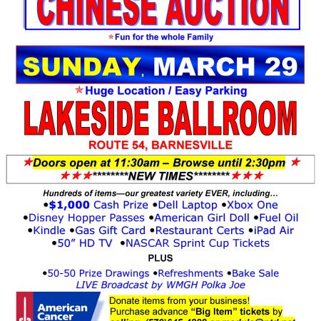 AMERICAN CANCER SOCIETY CHINESE AUCTION AT LAKESIDE BALLROOM IN BARNESVILLE (Sunday, March 29, 2015)