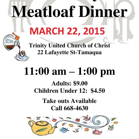 MEATLOAF DINNER SUNDAY AT TRINITY U.C.C. IN TAMAQUA
