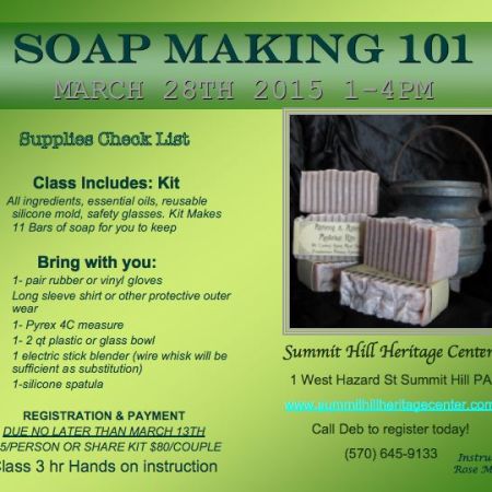 SOAP MAKING CLASS AT SUMMIT HILL HERITAGE CENTER (Last Day to Sign-Up is Friday, March 13, 2015)
