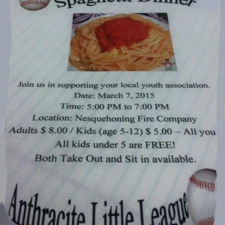 ANTHRACITE LITTLE LEAGUE SPAGHETTI DINNER BENEFIT SATURDAY IN NESQUEHONING