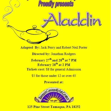 PERFORMANCES OF “ALADDIN” FRIDAY AND SATURDAY IN TAMAQUA