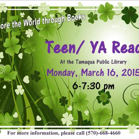 TEEN & YOUNG ADULT READING PROGRAM MARCH 16 AT TAMAQUA PUBLIC LIBRARY
