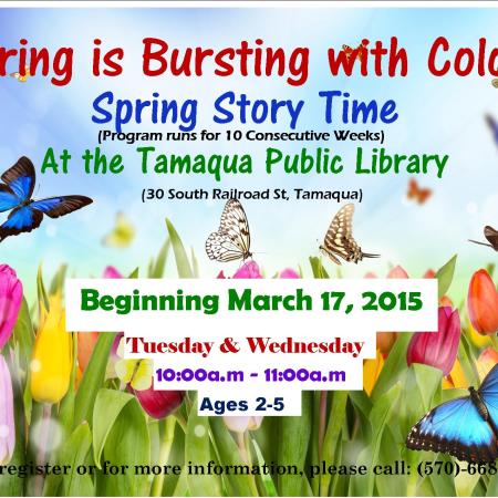 SPRING STORY TIME BEGINS MARCH 17 AT TAMAQUA PUBLIC LIBRARY; (AGES 2 -5)