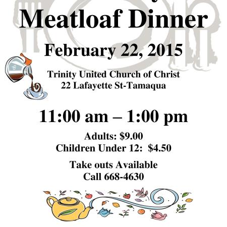 MEATLOAF DINNER SUNDAY AT TRINITY U.C.C. IN TAMAQUA