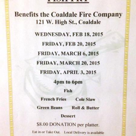 COALDALE FIRE COMPANY FISH FRY DINNERS SET FOR FEBRUARY, MARCH AND APRIL