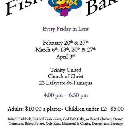 TRINITY U.C.C. IN TAMAQUA HOLDING FISH BAKE DINNERS FEBRUARY, MARCH AND APRIL