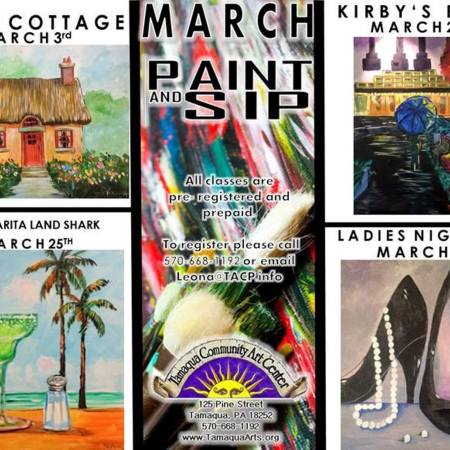 MARCH “PAINT AND SIP” SCHEDULE AT TAMAQUA COMMUNITY ARTS CENTER