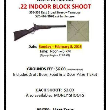 .22 INDOOR BLOCK SHOOT SUNDAY AT EAST END FIRE COMPANY IN TAMAQUA