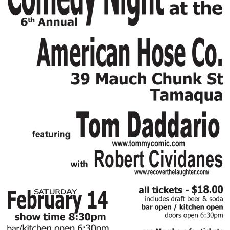 COMEDY NIGHT FEBRUARY 14 AT AMERICAN HOSE COMPANY IN TAMAQUA