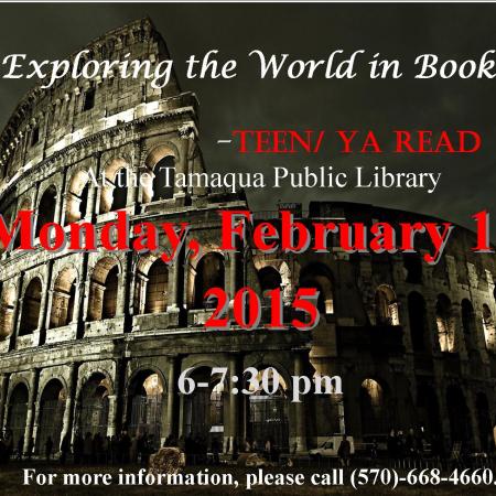 TEEN & YOUNG ADULT READING PROGRAM FEBRUARY 16 AT TAMAQUA PUBLIC LIBRARY