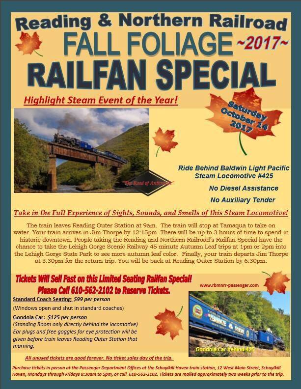 Reading and Northern Railroad Fall Foliage Railfan Special, Tamaqua, Jim Thorpe, 2017